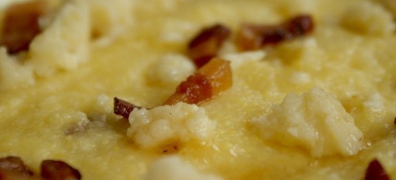- A kukoricadarát megfőzzük a tejben, ízesítjük sóval és ételízesítővel - a sóval vigyázni kell, mert a juhtúró és szalonna elég sós lesz. Nem főzöm túl keményre, de azért ne legyen folyós! (Elkészíthető mikróban is: jénai tálba öntjük a hozzávalókat, lefedjük, és 3-4 percenként megkeverve, maximumon elkészítjük.) Ha kész, hagyjuk langyosra hűlni.