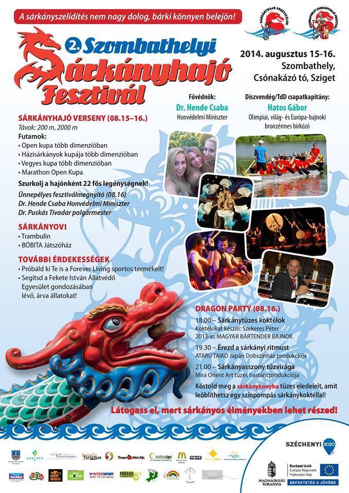 A sárkányőrület folytatódik! A Magyar Sárkányhajó Fesztiválrendszer 2. állomása Szombathely. A Savaria Turizmus Nonprofit Kft. és a Magyar Sárkányhajó Szövetség közös együttműködéssel megrendezi a II. Szombathelyi Sárkányhajó Fesztivált a Csónakázó-tónál.