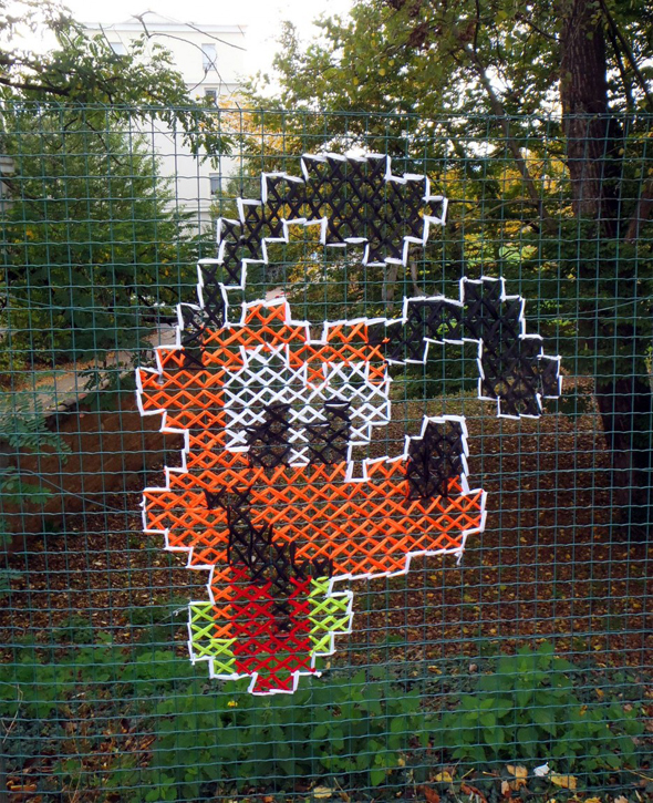 Bizonyára mindenki hallott már a keresztszemes hímzés technikájáról. Nos Uraim, itt gerilla-keresztszemezés, ami lassacskán meghódítja az utcákat. Pontosabban a kerítéseket és padokat! Az elkészítése ugyanis leginkább türelmet és odafigyelést, no meg időt igényel, mint az otthon végezhető "kistestvére", így aztán azok is belevághatnak, akik egyébként nem rajonganak az efféle, kézügyességet igénylő munkákért.