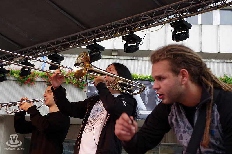 A délutáni eső rendesen átrendezte motivációs erővonalainkat. Kollégáé volt az open, egészen a Karakig, amiből lett egy Koprive-beállás a szakadó esőben, gasztrosátor alá bújt közönséggel, hazamenetel, majd újratervezés a kijutásra, és az Újvilág Utca, valamint a Karak zenekar "vizuális becserkészése".