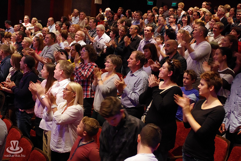 Függetlenül mindettől, a dalok jól működtek szimfonikban is, bár látszott, hogy a zenészek irtózatosan küzdenek a helyhez kötöttséggel. Nem lehetett könnyű dolga a pörgéshez szokott énekes-frontembernek, Kirchknopf Gergőnek sem, hogy a közel két órát egy negyed négyzetméternyi területen kellett eltöltenie. A hetfieldi hasonlat ezzel kapcsolatban tökéletes volt - láttuk, éreztük, hogy kibújna a bőréből, ám egy szimfonik koncerten ülve kell hupogni.
