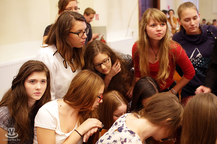 Csapatok feladatmegoldás közben a Premontrei Gimnáziumban megrendezett Magyar Dal Napján