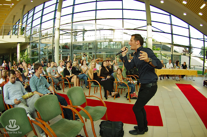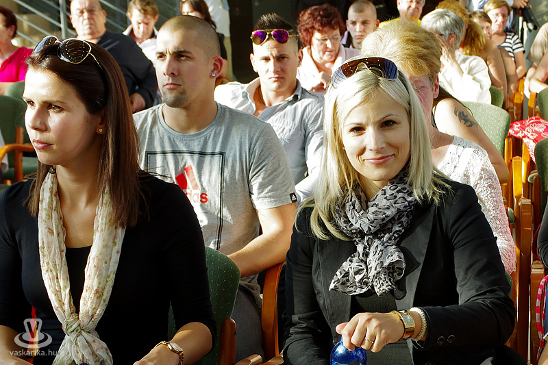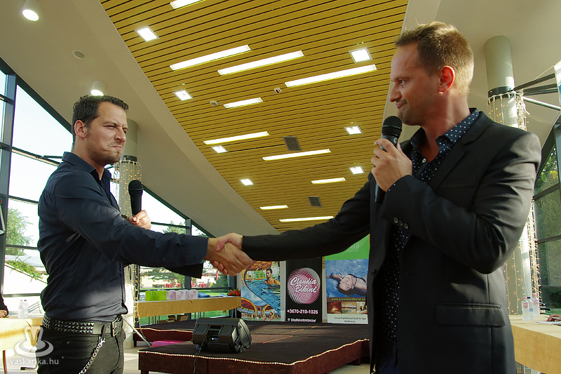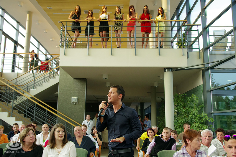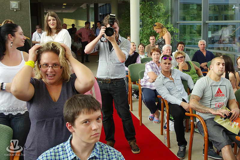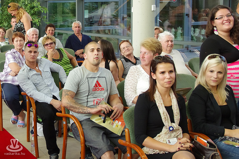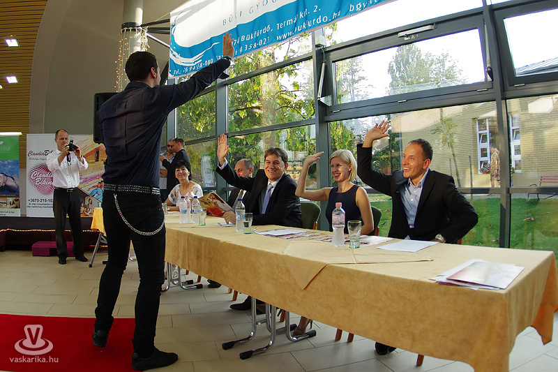 A lányokon még az utolsó „simításokat" végezték, amikor jött a nap sztárvendége, Vastag Csaba, s egy dögös popslágerrel hevítette az amúgy sem iglu-hőfokú légteret, majd Hegyi Balázs műsorvezető csatlakozott be a felvezető-ráhangoló show-ba. Lepörögtek a dalok, a rendezvényt pedig hivatalosan is megnyitott Németh Sándor polgármester. Bemutatták a meglepően bő létszámú zsűrit, akitől a lányok „sorsa" függött: Vörös Imre fürdő-vezérigazgatónak, a zsűri elnökének Németh Csaba műszaki igazgató, Láng Veronika marketing igazgató, Prauda Edina szépségverseny licence-tulajdonos, Nádasdi Zoltán, az Oktomedia ügyvezetője, Fehér Zoltán mesterfodrász, Márk Angelika, a 2012-es Vas megye Szépe, Cserős Teréz független Oriflame direktor és Tóth Attila, a Bajor Panzió és Étterem ügyvezetője segítette munkáját.