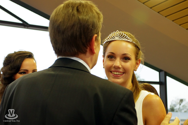 A szalagot a város polgármesterétől, Németh Sándortól kapta meg, míg a koronát Márk Angelika, a 2012-es Vas megye Szépe adta át Vörös Imrének, a zsűri elnökének, aki megkoronázta a láthatóan föld felett pár centivel „lebegő", a sikertől meglepődő Anéliát.