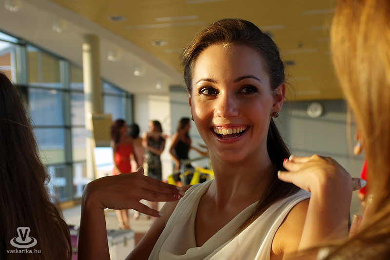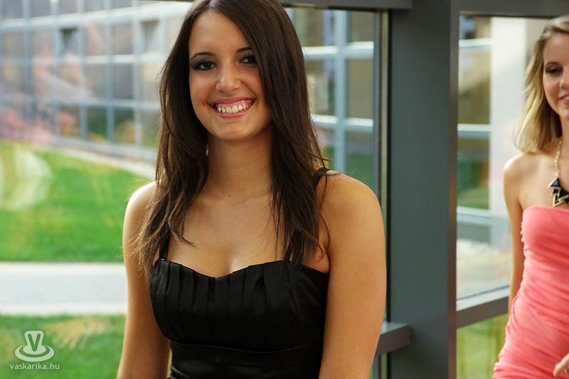 Az utolsó etapban koktélruhában - az elegánstól a sportosabb vonalvezetésűig - vonultak fel a lányok. Talán ebben voltak a legoldottabbak, bár az igazi izgalmak még csak ezután következtek. Vastag Csaba még utoljára megmozgatta a közönséget, majd felsorakoztak a színpadon a lányok, átvették a szponzori felajánlásokat és különdíjakat. Utóbbiak közül a gyógyfürdő éves bérletét Jónás Kinga, a nyugat.hu wellness-felajánlását Simonits Dóra kapta.