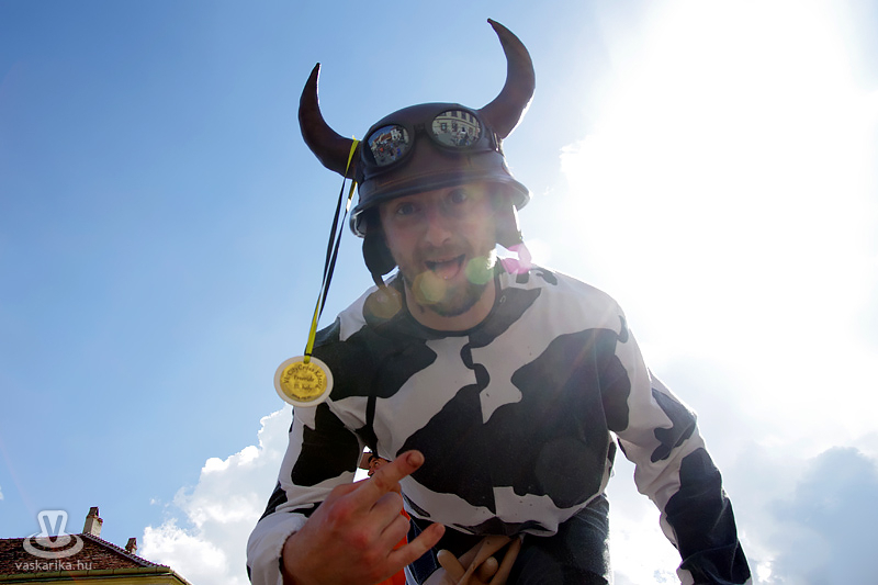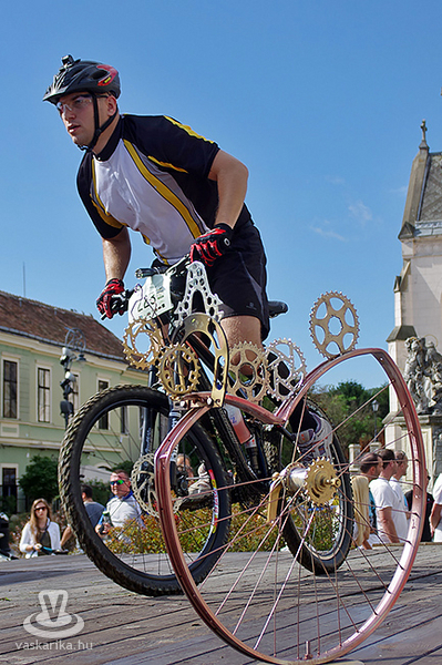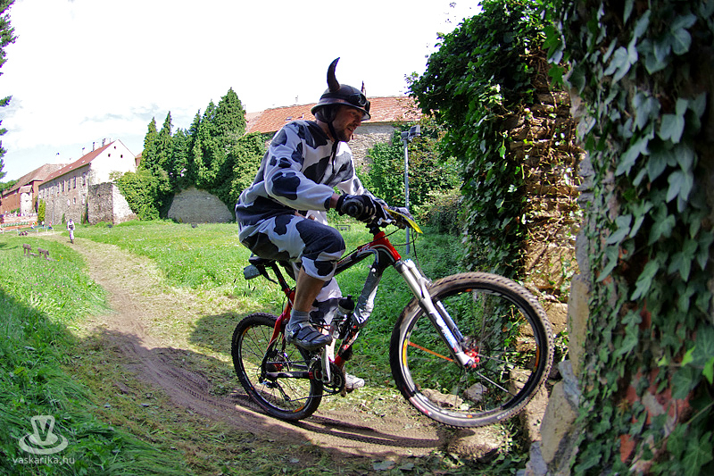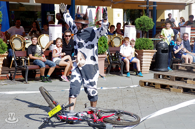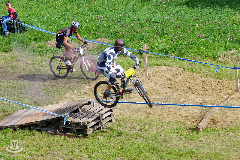A "11 órai harangszótól a déli harangszóig", azaz egy órán keresztül köröztek a hegyibicajosok, hol aszfalton, hol terepen. A versenyzőknek vegyes akadályokat kellet leküzdeniük: alagút, farönkök, lépcsősorok, letörések és tekerős emelkedők vártak a bringásokra.