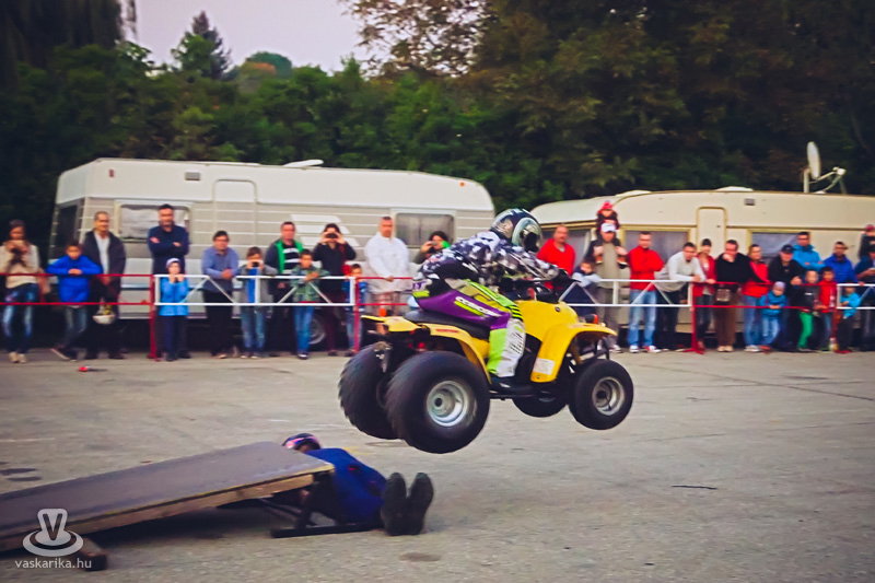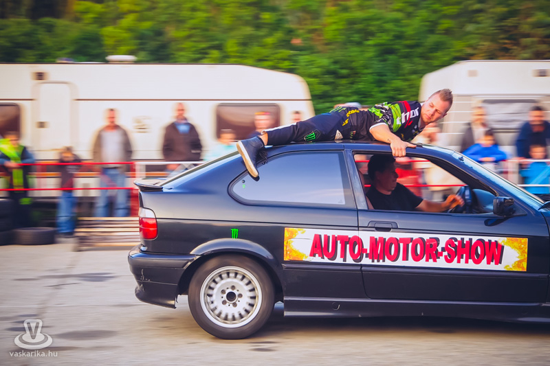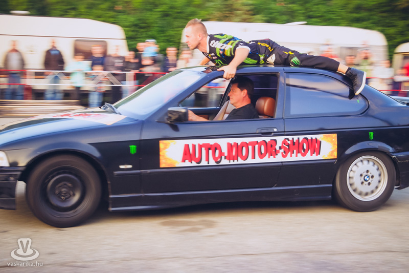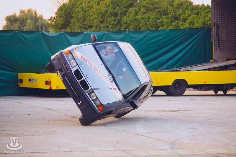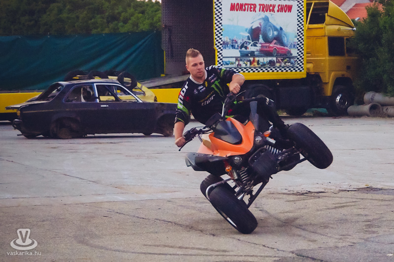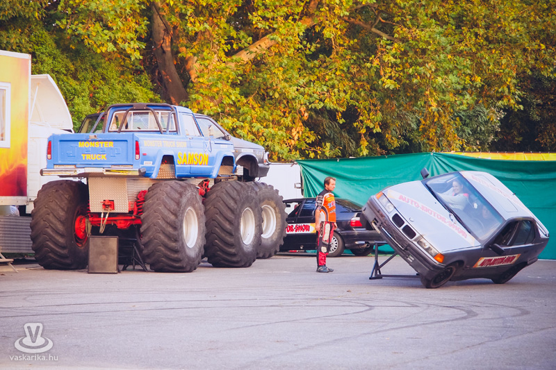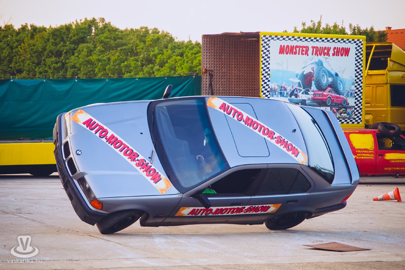 A Monster Truck Cascador bemutatójából a kétkerekes egyensúlyozási mutatványok sem maradhattak el. A nézők közül önkéntes alapon választott hölgyektől lett, akikbe a sikítás is beszorult. De a hátsó ülésen talált, legalább G-s méretű melltartó megmagyarázta, hogy miért csak másodjára sikerült a kétkerekes mutatvány...