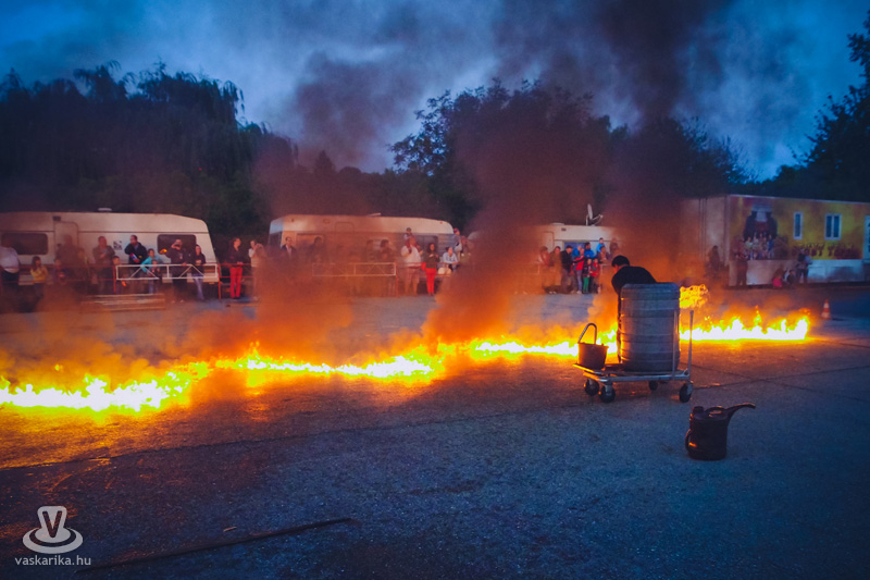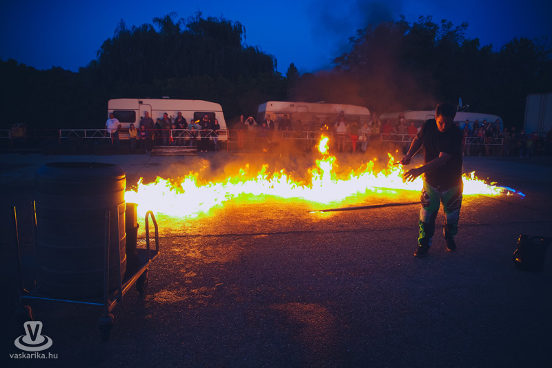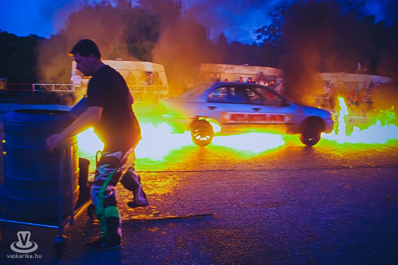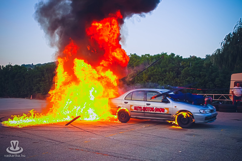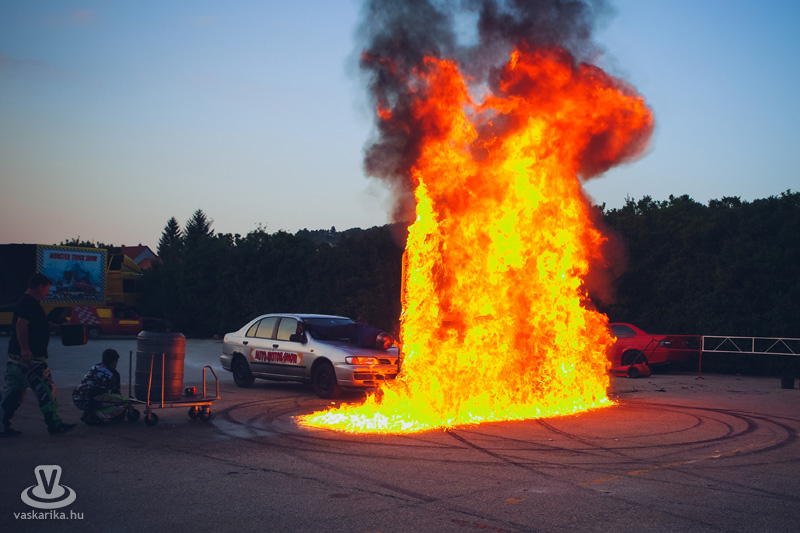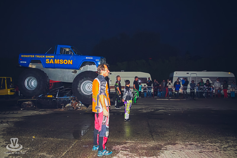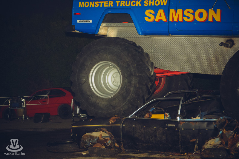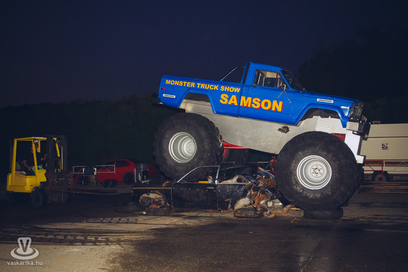 A legfiatalabb fellépő 11 éves volt, így biztos, hogy jogosítvánnyal nem rendelkezett... Az est már sötétbe hajló részére maradt SAMSON, az igazi Monster Truck és a lapítógép. Ennek megfelelően készült el a képként falra szerelhető autórongy SAMSON segítségével.