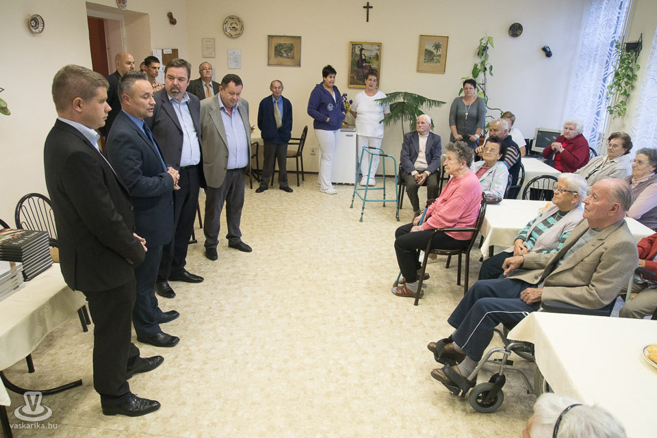 Zétényi Irén intézményvezető asszony meghívására érkezett Vlasich Krisztián, aki idén sem feledkezett meg a lakókról. A Városfejlesztési és Pénzügyi Bizottság elnökét már jól ismerik a lakók, hisz minden jeles alkalommal ellátogat az intézménybe, hogy tiszteletét tegye. Most sem érkezett üres kézzel, hisz könyvekkel és egy nagy kosár gyümölccsel kedveskedett az Idősek Világnapja alkalmából.