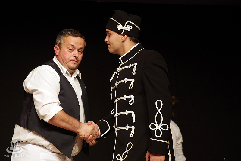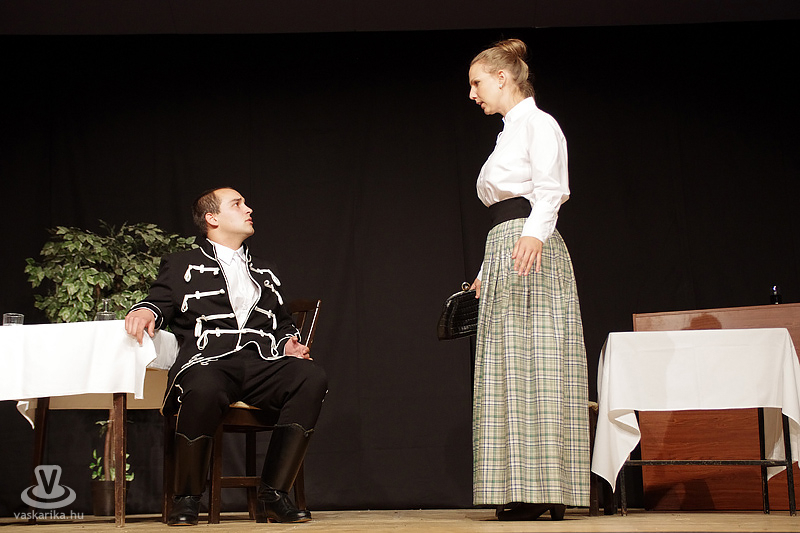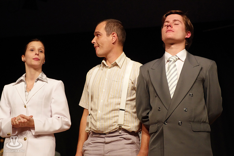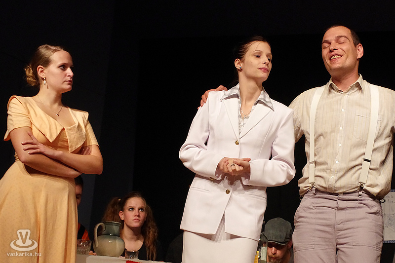Ez egy jó kérdés. Olyan nincs, hogy mindig mindennel elégedettek lehetünk. Viszont úgy gondolom, hogy a szombati premier előadáson mindenki a maximumot hozta ki a karakteréből. Amit kértem az előadás előtt, azt figyelembe vették a szereplők. Én már akkor mosolyogtam, amikor a bemutató előtt néhány nappal megérkezett az a két gyönyörűszép ruha, ami a két főszereplőn, Kabay Ágnesen és Horváth Mátén volt. Mikor felvették őket, és már a főpróbán abban voltak, akkor teljesedett ki számukra a szerep, akkor találták meg a karakterük milyenségét. Sajnos így nehéz rendezni, hogy nem látod a darabot teljesen kívülről, de úgy gondolom, és a visszajelzések is azt igazolják, hogy „ült" a darab a közönségnek, sodródtak ők is az előadással. Egy-két kisebb részletet még át kell gondolni, de összességében elégedett vagyok a csapattal és az előadással.