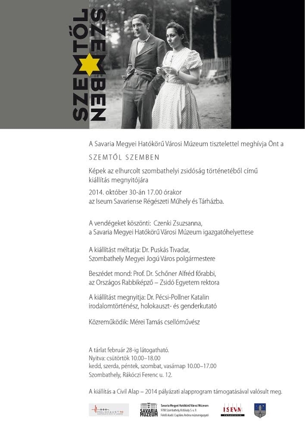 A Holokauszt Emlékév 2014 alkalmából nyílik kiállítás október 30-án, 17 órakor Szemtől szemben - Képek az elhurcolt szombathelyi zsidóság történetéből címmel az Iseum Savariense Régészeti Műhely és Tárházbában.