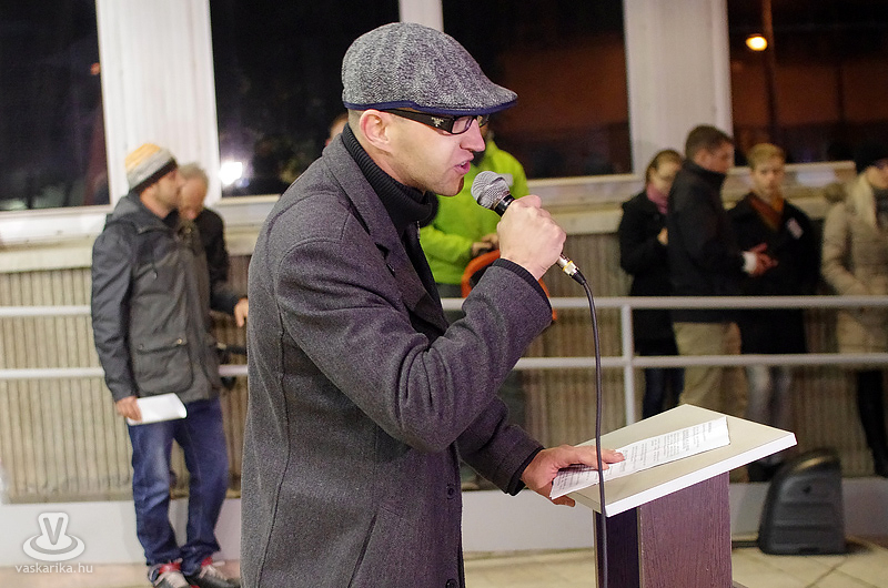 Szalai Szabolcs, a demonstráció egyik szónoka közölte: céljuk, hogy vidéken is megmutassák, az embereknek van véleményük, és nem akarnak internetadót fizetni.