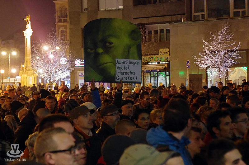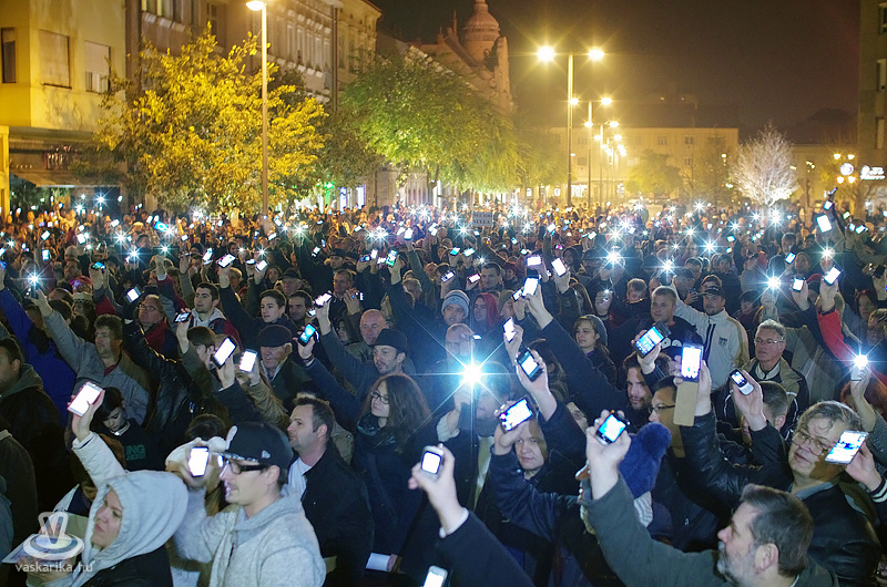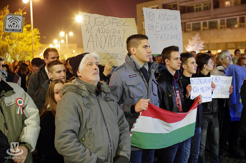 Október 30-án a Városháza előtt ezerfős tömeg tiltakozott az internet tervezett adóztatása ellen. A tüntetésen felszólalt Endrődy Krisztián színész, Szalai Szabolcs kommunikáció szakos egyetemista és dr. Szendrő-Németh Tamás blogger.