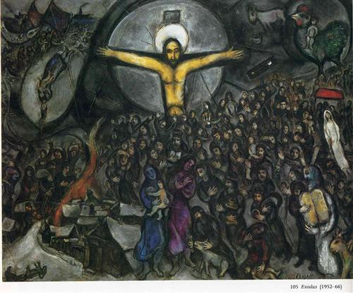 Chagall Oroszországban nőtt fel, abban az országban, mely nem szűkölködött a zsidók elleni pogromban, zavargásokban. A zsidókat elűzték otthonaikból, házaikat felgyújtották. Az üldöztetés miatt sokan kényszerültek elhagyni nemcsak szülőföldjüket, hanem az egész országot is. Ezt Chagall szerint szintén egyfajta exodusként értelmezte, hiszen a Szentföldön találtak új otthonra, vagyis kivonultak a megaláztatás színhelyéről.
