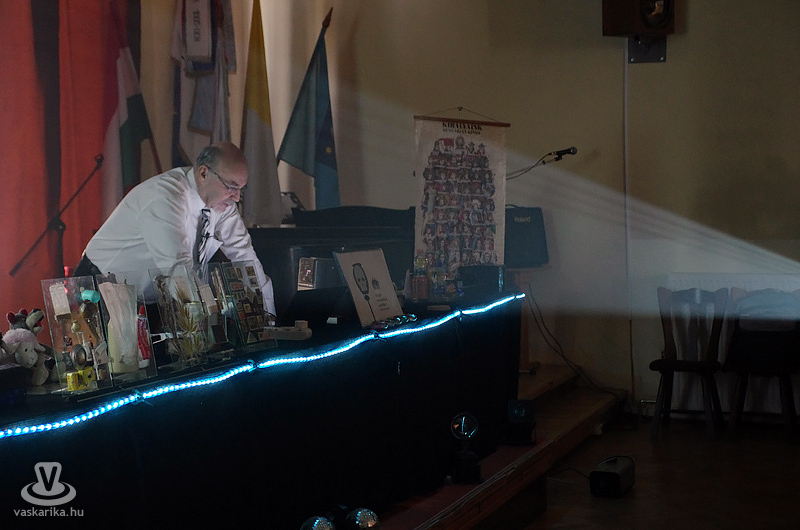 A teremben Klobusitzky György a szemléltető anyagokat felsorakoztató asztal mögött tett-vett, türelmesen várta, hogy mindenki elfoglalja a helyét. Ahogy izzott a hangulat, a kivetítőn fotók jelentek meg különféle diszkókból. Vicces-ironikus, valódi belevaló, bulizós fotók. Majd meleg, megnyerő orgánumán, amelyet az erősítők még inkább kiemeltek, köszöntötte a Tanár úr a megjelenteket. Röviden, ám minden szavát kép- és hangeffektekkel illusztrálva bemutatkozott.