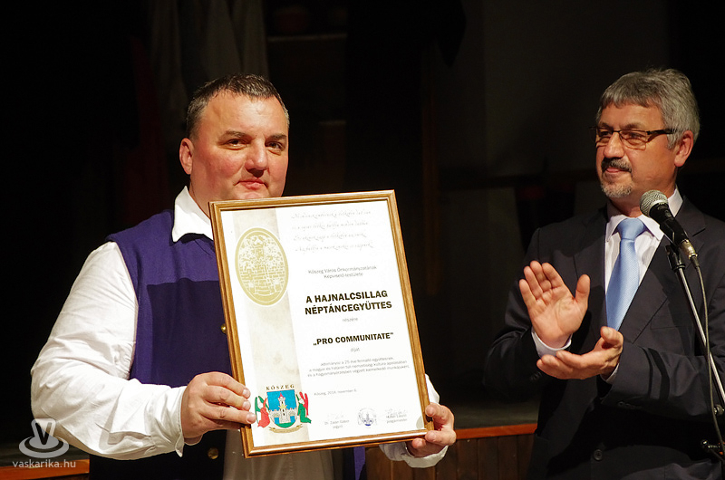 Huber László polgármester együttest méltató beszédében kiemelte, hogy a népi értékek őrzése, ápolása és átadása mellett példaértékűen érvényesült egy másik szempont is: kialakult egy egészséges öntudatú, nemzeti szellemiségű közösség. Ennek elismeréseként, valamint a magyar és a határon túli nemzetiségi kultúra ápolásában és a hagyományőrzésben végzett kiemelkedő munkájáért a város képviselő-testülete Pro Communitate-díjjal tüntette ki az együttest, míg Básthy Béla alpolgármester Vas Megye Önkormányzatának Közgyűlése nevében adott át elismerő oklevelet.