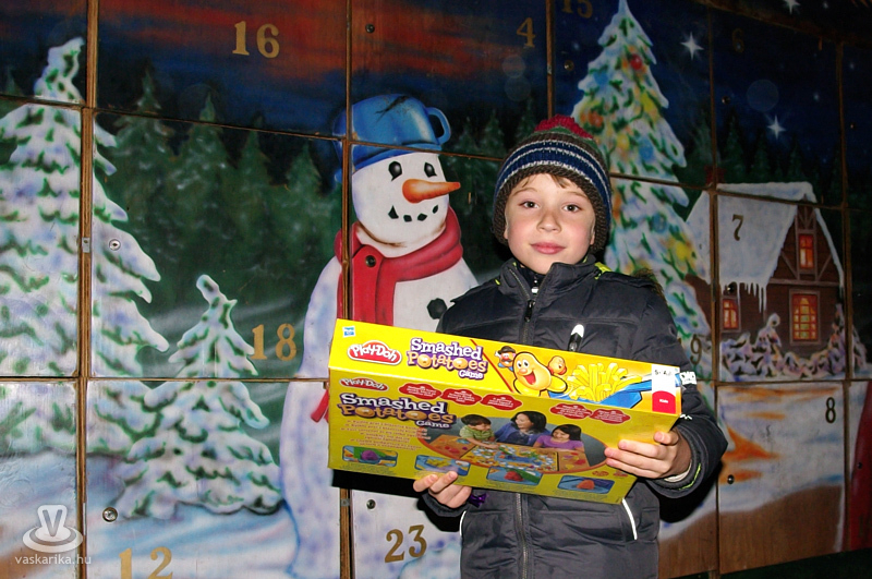 Advent első hétvégéjén ismét elkezdődött az adventi kalendáriumnyitogató játék, ahol a legkisebbek közül az ügyes feladatmegoldás - vagy épp a szerencsés véletlen - után ketten ablakot nyithattak, amik mögött egy-egy értékes ajándék lapult. A feladat először szaloncukor kereséssel indult, majd egy rövid labdajáték után ketten izgatottan szorongathatták a megérdemelt ajándékot.