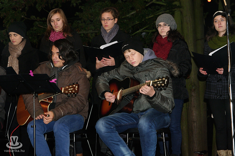 Az ünnepváró gondolatok után megáldotta a koszorút, majd meggyújtotta az első gyertyát. A színpadon a Kölcsey Ferenc Gimnázium diákjainak műsorát láthattuk, akik énekkel, szavalattal tették le méltón a készülődés alapjait ezen az első adventi hétvégén.