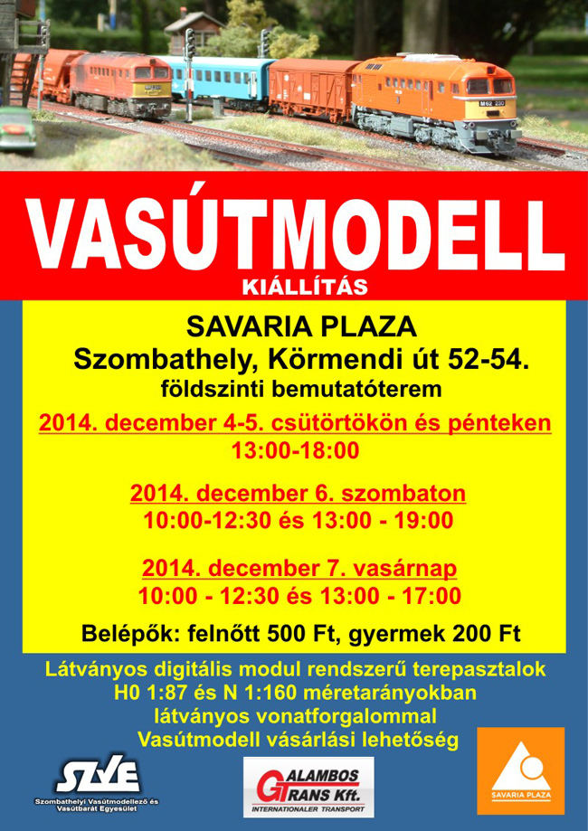 A Szombathelyi Vasútmodellező és Vasútbarát Egyesület december 4-7. között fennállásunk 21. évfordulója alkalmából Szombathelyen a Savaria Plázában kiállítást rendez.