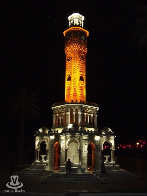 Rettenetesen éhesek voltunk, és látva a kebab- árusok hihetetlenül olcsó árait, dupláztunk, sőt, tripláztunk a csirkés dönerből. Az árak töredékei voltak az isztambuli és kappadókiai áraknak, így ezt nem is lehetett kihagyni. Egy török líráért isteni frissen facsart gránátalmalét szürcsölgettünk az úton sétálgatva. A Konak Meydani a város leghíresebb tere, a tenger partján. Rögtön két látnivaló is van itt, a tér közepén álló díszes óratorony, amelybe a még ma is működő óraművet II. Vilmos német császár adta ajándékba. Az óratoronnyal szemben áll a nyolcszögletű, csempével díszített Konak mecset.