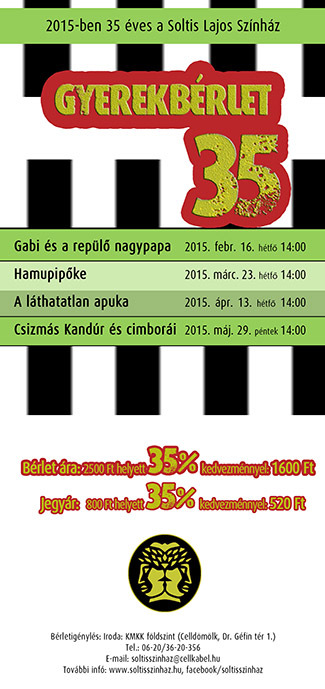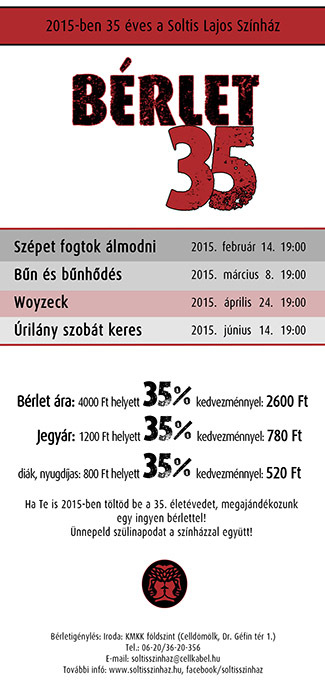 A 2015-ben 35 éves Soltis Lajos Színház az évforduló alkalmából különleges bérletajánlattal kedveskedik közönségének.