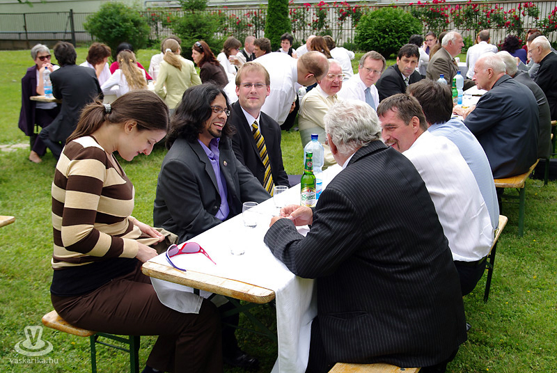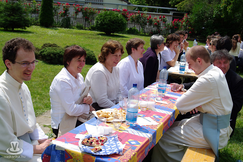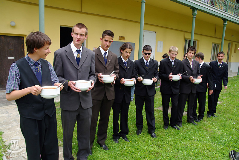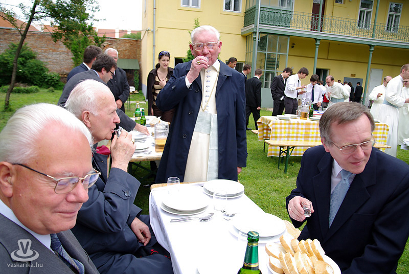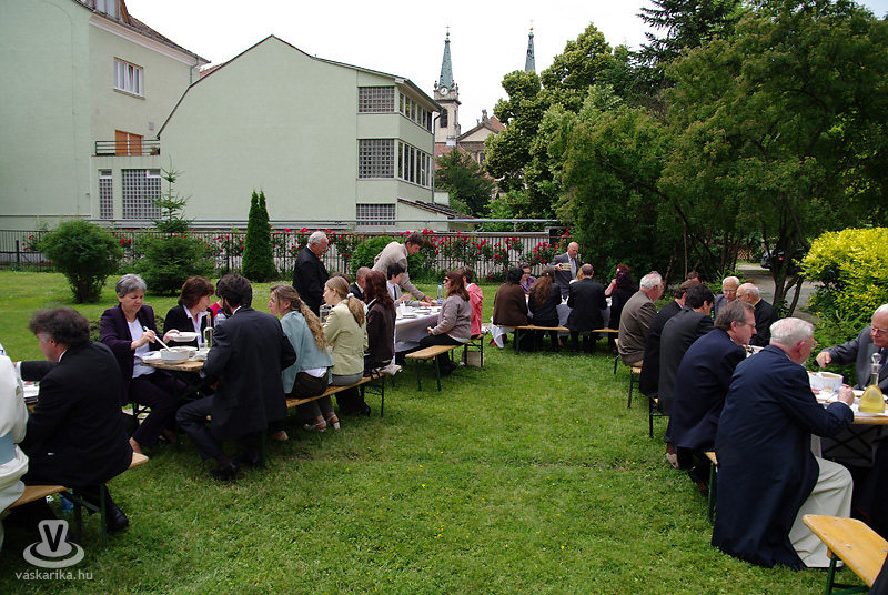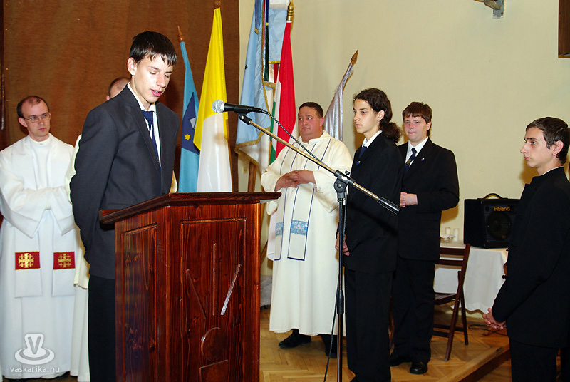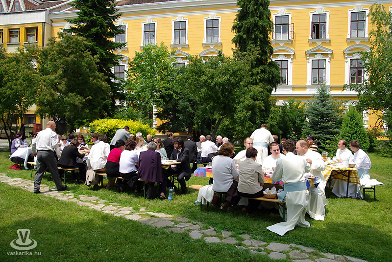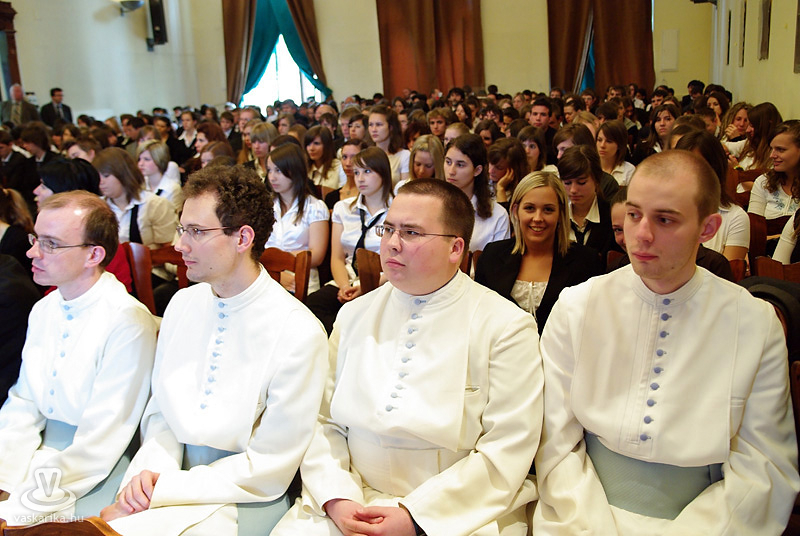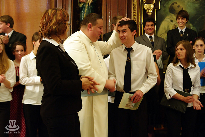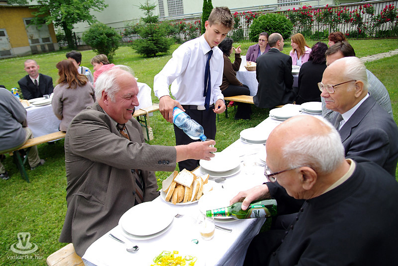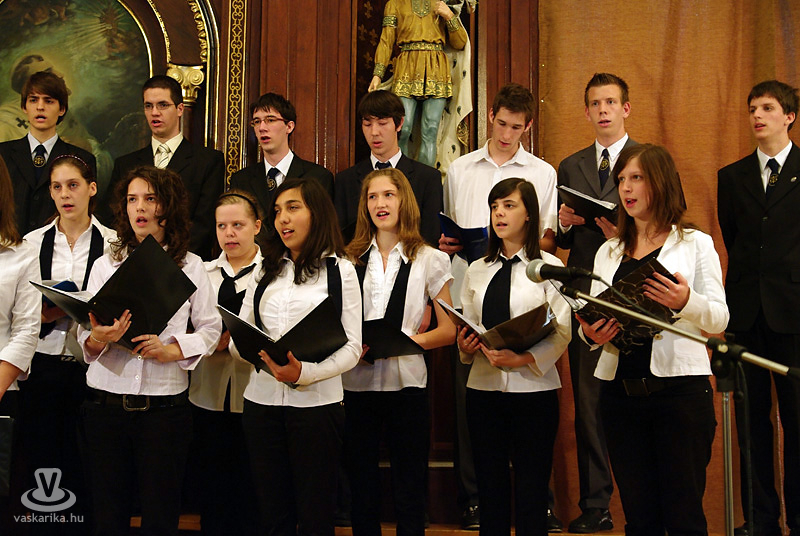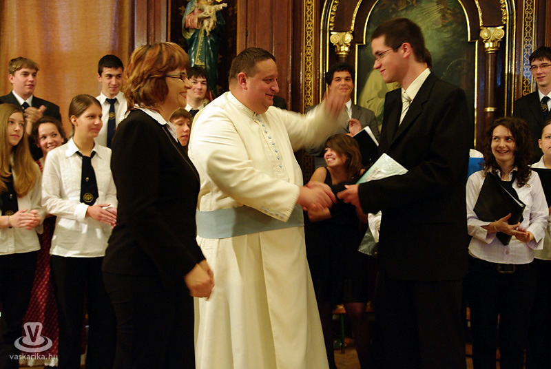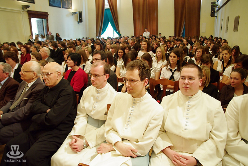 Az ünnepség a díszteremben folytatódott Ödön apát úr rövid áttekintésével a rend történetéről, majd diákjaink tartalmas, sokszínű koncertet adtak elő, amelyben a klasszikus zene mellett helyet kapott a néptánc, a rockzene és a jazz is egyaránt. Ezután diákjaink nagyobb része már megkezdődő tanítási szünetének örvendhetett, míg egy csoportjuk kedves kötelességének eleget téve, tanárai ünnepi ebédjén szolgált fel. Az egész ünnepséget hangulatos beszélgetés zárta a rendház kertjében.