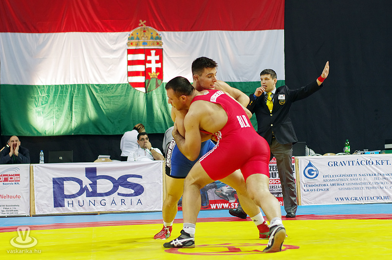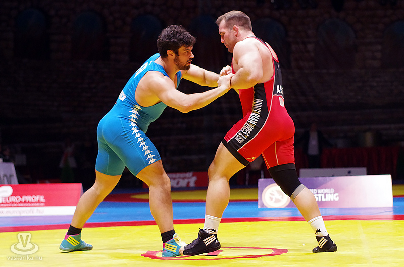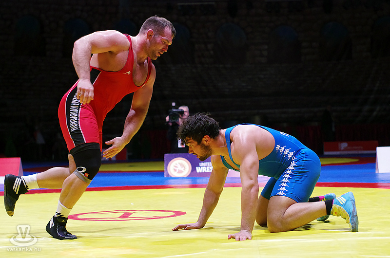 Kiss Balázs (pirosban) taktikus versenyzéssel nyert a 98 kg-osok döntőjében