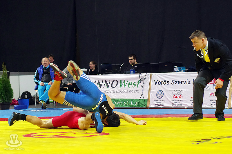 A 2009-es vb-győztes Kiss Balázs szintén magabiztosan menetelt a döntőbe, úgy, hogy nem tudtak rajta akciót csinálni ellenfelei. A BVSC birkózója könnyed, 9-0-ás sikerrel kezdett a kirgiz Bekszultan Mahmudov ellen, majd az elődöntőért Németh Ivánt verte 1-0-ra. A négy között aztán a román Alexuc Ciurariut is 1-0-ra győzte le, a fináléban pedig azzal az olasz Daigoro Timoncinivel csatázott, aki az elődöntőben Török Zsoltot múlta felül 2-0-ra. A döntőben Kiss tartotta magát a korábban bevált eredményhez és - riválisa intésével - 1-0-ás sikerrel szerezte meg a kategória első helyét, majd meccse után azt mondta, hogy a szoros eredmény ellenére magabiztosnak érezte sikerét.