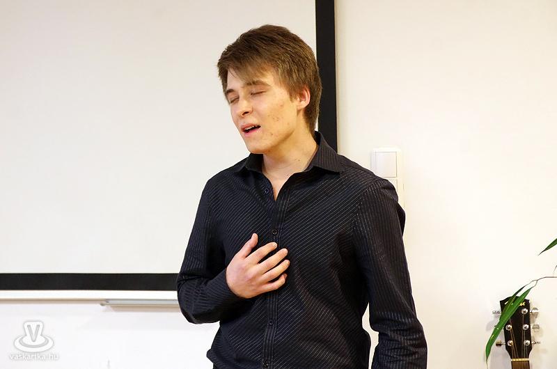 Az iskola folyosói... bár tudnának beszélni! Elmesélhetnék, hogy micsoda romantikázás szemtanúi lehettek, amikor a fiatal tehetség egy leányzó szívét rabolta el ezzel a hanggal. S milyen szépen szóltak Elton John, Michael Bublé, Josh Groban, vagy a délután során felcsendülő mesék betétdalai a levegőt vibráltató torokból. Nem egy folyosónyi, egy teremnyi ember bájolódott el tőle. S bár „szerelmek jönnek, szerelmek mennek", mindig van valami, ami örök. Reméljük, a zene iránt érzett szerelem mulandósága szóba sem jöhet Péter életében. A közönség már most szívébe zárta a fantasztikus orgánumú fiatalt, aki - még nem tudni pontosan melyik országban - zeneakadémián tervezi a folytatást.