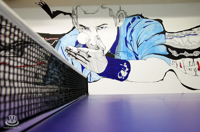 Kedden nem a megszokott módon találkozott a vizuális kommunikáció a sporttal - március 24-én átadták az egyetem képi ábrázolás szakos hallgatója, Kárpátvölgyi Roxána által kifestett egyetemi pingpong termet.