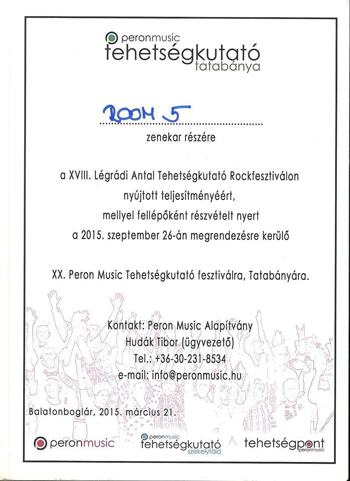 PP: A Peron tehetségkutató az ország legnívósabb könnyűzenei tehetségkutatói közé tartozik (Szatmári Juli két évvel ezelőtt megnyerte, majd az azt követő Hangfoglalót is! - a Szerk.). Bekerülni sem egyszerű, a zenekaroknak saját dalt kell beküldeni, amit egy szakmai zsűri bírál el, és 10 előadót juttat a döntőbe. Mi bekerültünk ebbe a 10-be a balatonboglári tehetségkutató különdíjasaként. A mezőny nagyon erős lesz, valószínűleg tele jobbnál jobb zenekarokkal. Előnyösebb helyzetben vannak azok a formációk, akik pár éve együtt vannak, de ettől függetlenül bízunk magunkban és a saját dalainkban, szeretnénk az élbolyba végezni.