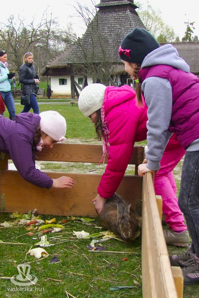 Húsvéthétfőn sem maradtak programok nélkül a családok. Szombathelyen az Arborétumban és a Vasi Skanzenben is voltak az ünnephez kapcsolódó feladatok, kézműves foglalkozások, látnivalók. Ez utóbbi helyre néztünk be délután, bár inkább délelőtt volt igazán nagy nyüzsgés, amikor a Nyugat Rádió jóvoltából csokinyuszi kereséssel gyorsan telt az idő. A délutáni programok közt nyuszisimogató, lányoknak csönkölés, fiúknak tojásba vágás, népi szabadtéri, ügyességi játékok, fajátékok szerepeltek.
