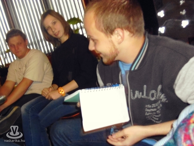 Lassan gyülekezett az irodalmi társaság, s a kedvenc italok beszerzését követően, mindenki bemutathatta asszociációit a szakáll témára. Egy klassz beszélgetés kerekedett a férfiak szakállhoz fűződő viszonyáról is. Nagy örömünkre a Nagy Lajos Gimnáziumból is ellátogatott hozzánk három leány, írásaikkal ők is bemutatkoztak.