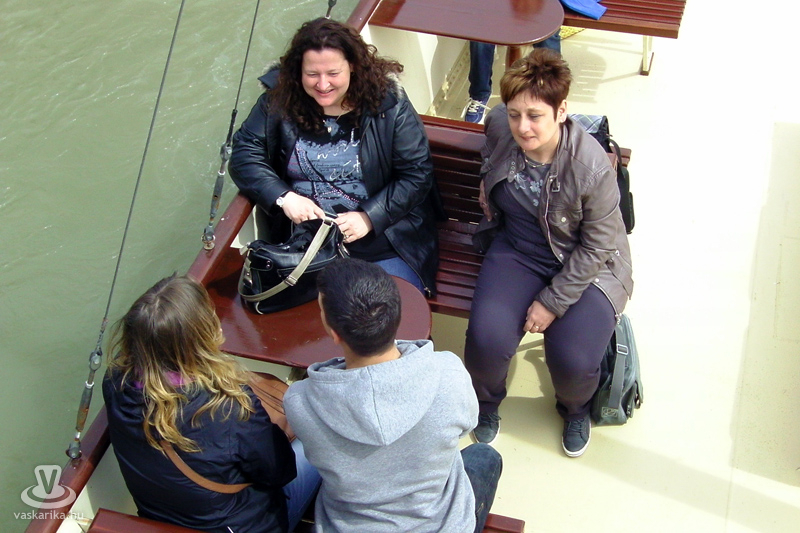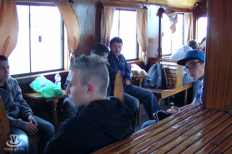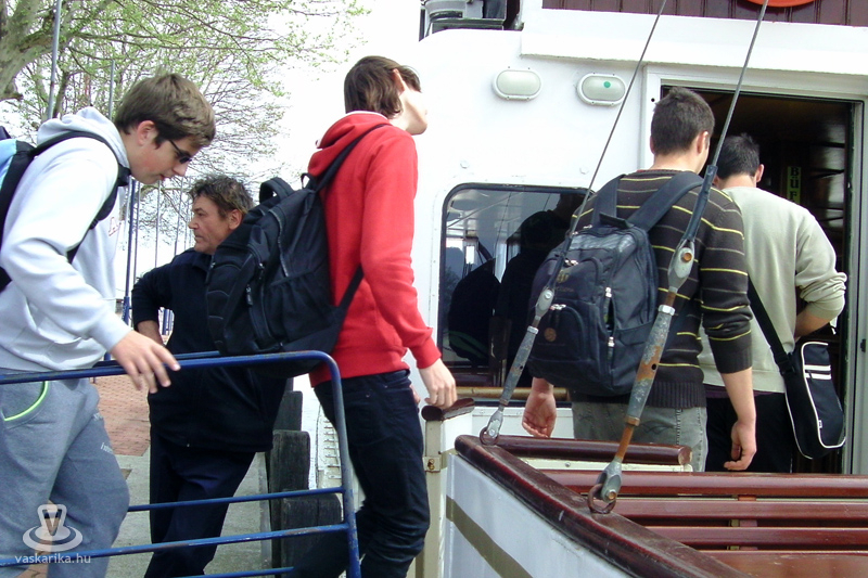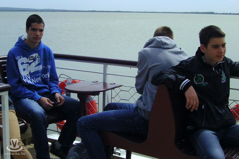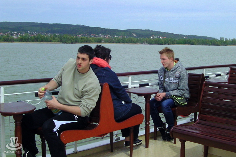 Innen az utunk Keszthelyre vezetett, ahol felszálltunk a Balaton legrégebbi, 1892-ben üzembe helyezett sétahajójára, a Helkára. Ez a hajó - miután kivonták a forgalomból - sokáig presszóként üzemelt Balatonfüreden. Aki a magyar filmekben jártas, az talán emlékszik a Pogány Madonna c. filmre, amelynek egyik jelenetét ezen a hajón forgatták. 1991-ben helyezték újból forgalomba, azóta séta- és menetrendi hajóként is üzemel. Felszállva 1 órás hajózás vette kezdetét, s még az se szegte a kedvét a gyerekeknek, hogy a szél erősebben fújt. Egyik tanulónk még a hajó kormányzását is kipróbálhatta.