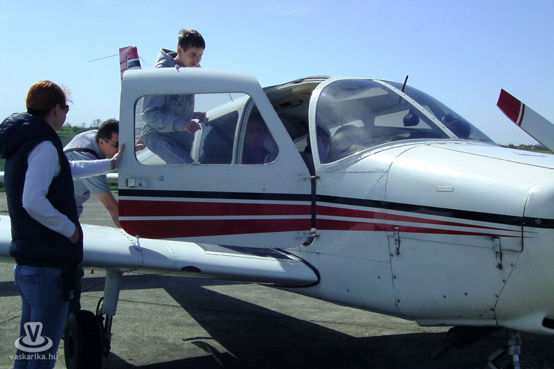 Kőszegről autóbusszal érkeztünk először a sármelléki nemzetközi repülőtérre, ahol két Cesna géppel repülhettünk. A legtöbben félelemmel vegyes izgalommal várták a repülést, mivel sokan még csak most láttak közelről repülőt, nem hogy repültek volna. Nyugtatásként szolgált az a mondat, hogy még egy gép se maradt a levegőben! Alkalmanként 3-3 utast vittek fel a gépek, amelyek 10-15 percig tartózkodtak a levegőben. Fentről megtekinthettük a Kis-Balatont és a környéket, s a pilóta mellett ülők még vezethették is a gépeket. Akik leszálltak a gépekről mosolyogva mesélték az élményeket. A repülés végeztével a buszunk a kivilágított felszállópályán haladt kifele, mely előtt egy kis gép gurult.